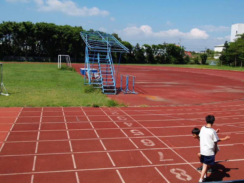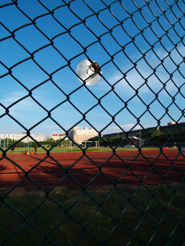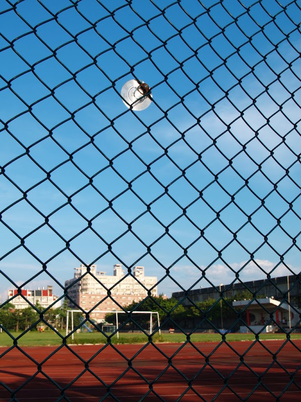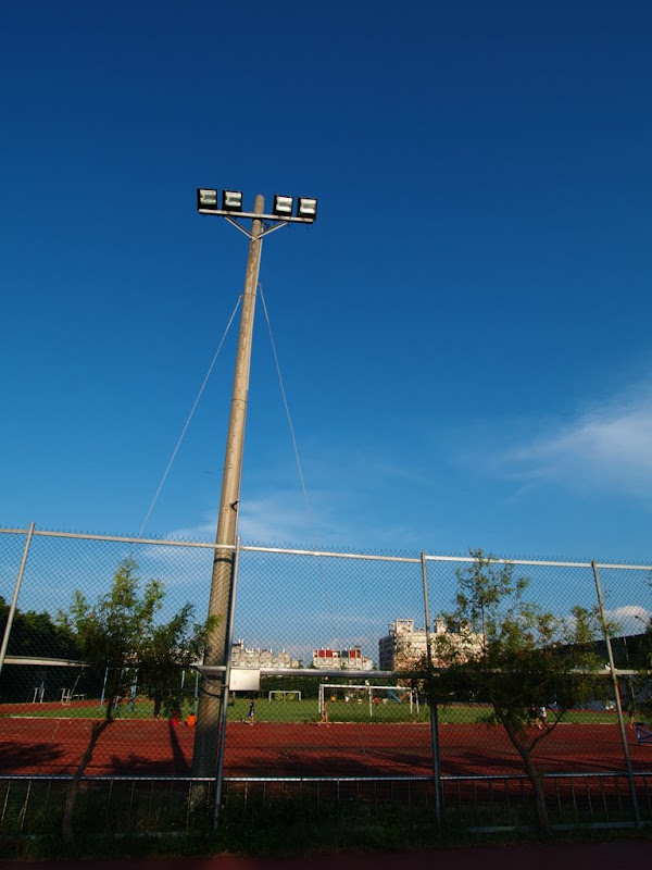 今天趁著下課時間,拿出我的裝備,拍下操場的一角。當然要有我所喜愛的藍天嘍!